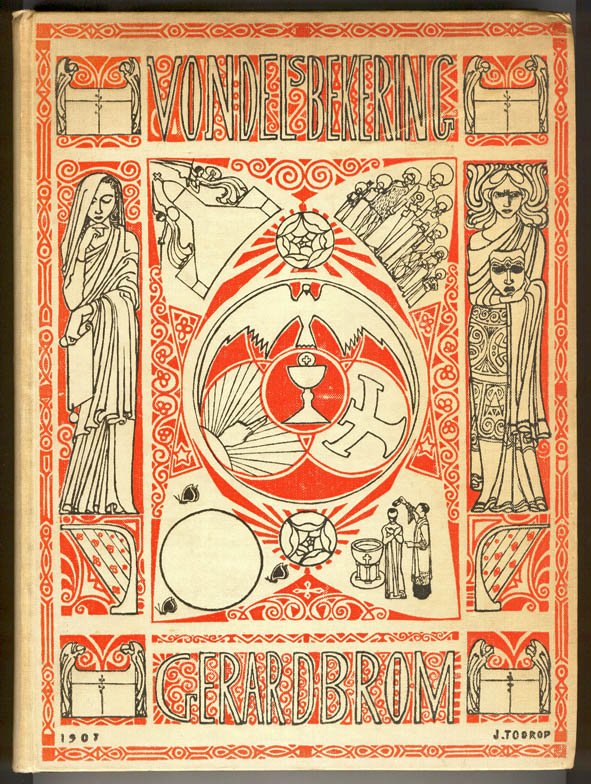 Bookbinding for ‘Een boek van verbeelding’ by Louise Ahn-de Jongh, design: Jan Toorop (1893)Bookbinding for ‘Metamorfoze’ by Louis Couperus, design: Jan Toorop (1897)Cover for ‘Psyche’ by Louis Couperus’, design: Jan Toorop (1898)Cover for ‘Egidius en de vreemdeling’ by W.G. van Nouhuys, design: Jan Toorop (1899)Bookbinding for ‘Een Droom’ by Henri Borel, design: Jan Toorop (1899)Bookbinding for ‘Babel’ by Louis Couperus, design: Jan Toorop (1901)Bookbinding for ‘Gabriëlle’ by Marie Metz-Koning, design: Jan Toorop (1902)Bookbinding for ‘God en goden’ by Louis Couperus, design: Jan Toorop (1903)Bookbinding for ‘Vondel’s bekering’ by Gerard Brom, design: Jan Toorop (1907)Cover for ‘Het Roomsche kerkgebouw’ by M.C. Nieuwbarn, design: Jan Toorop (1908)Cover for ‘Avondrood’ by Felix Rutten, design: Jan Toorop (1913)Book cover for ‘Pandorra’ by Arthur van Schendel, design: Jan Toorop (1919)